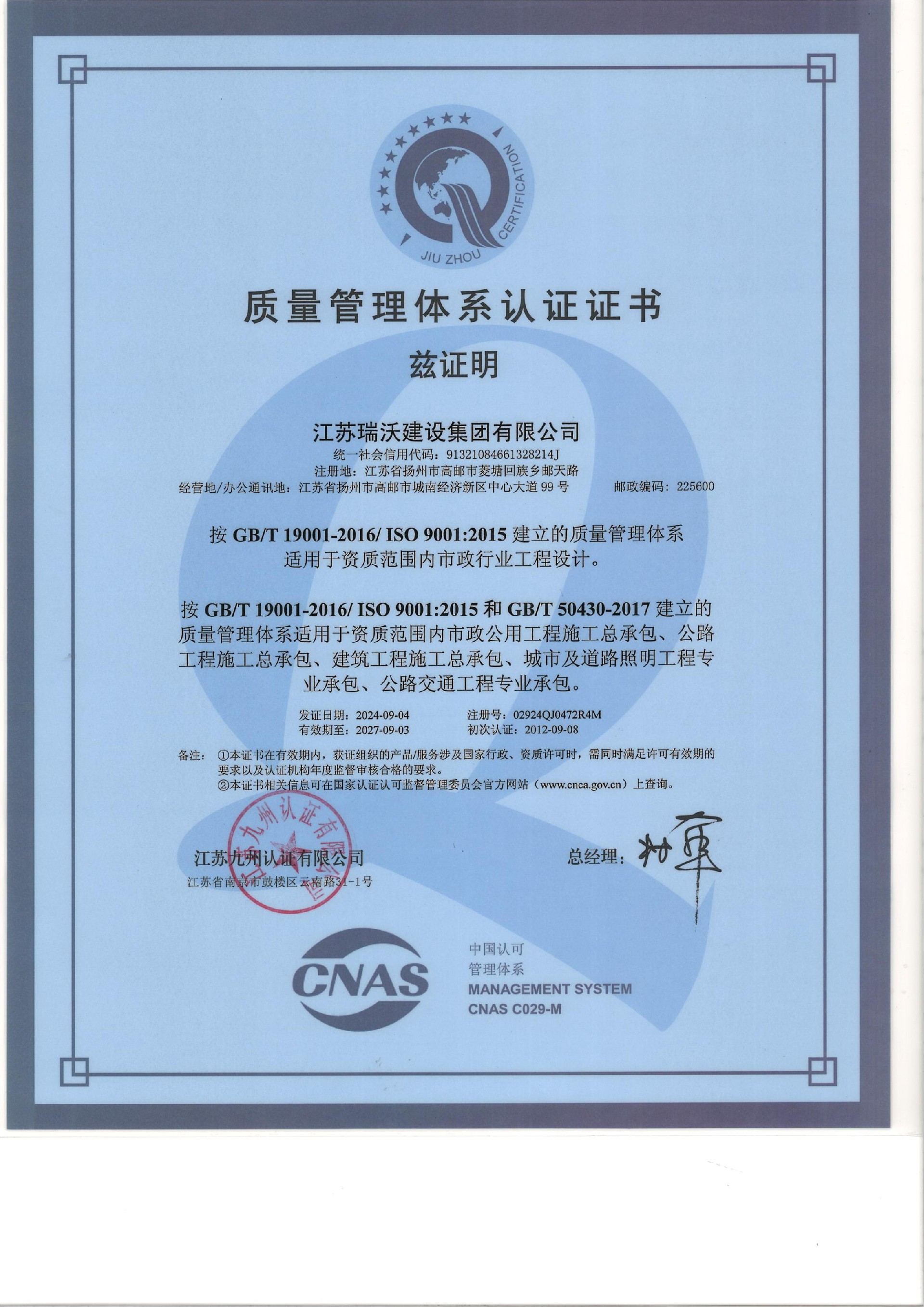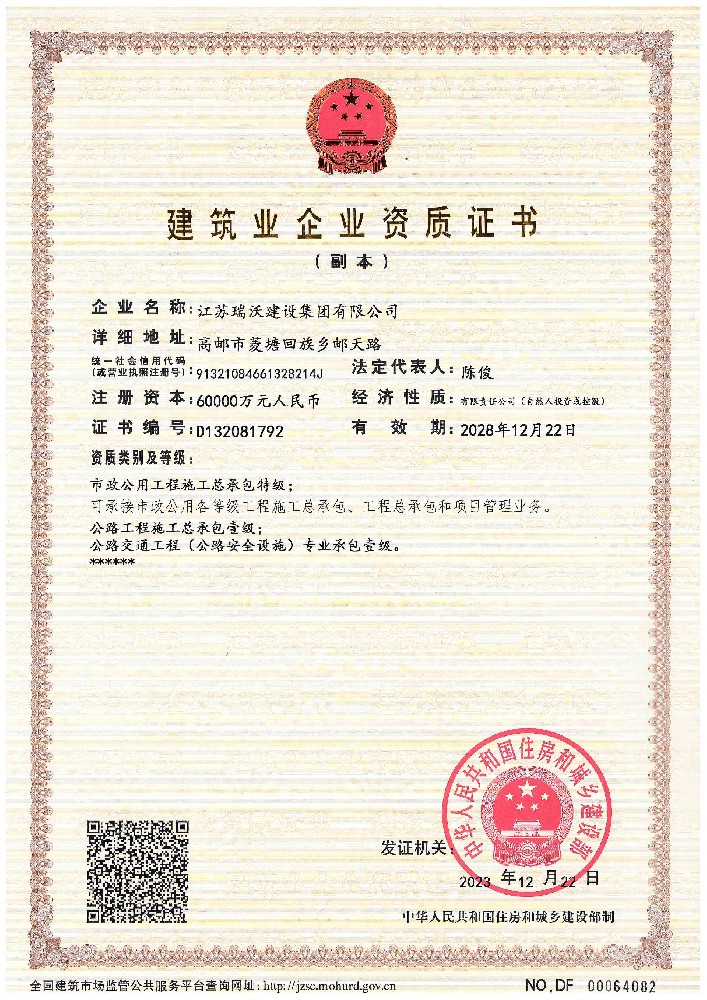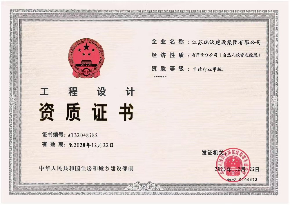 江蘇瑞沃建設集團有限公司成立于2007年,是一家以市政、交通工程建設為主導,集房屋建筑、交通安全設施、城市道路照明工程、電力工程、隧道工程、航道工程及投融資為一體的綜合性企業(yè)。企業(yè)注冊資本60000萬元,現有各類技術人員580人,其中中、高級以上人員498人,注冊類人員268人,一、二級建造師166人。公司榮獲“江蘇省建筑業(yè)優(yōu)秀企業(yè)”、“江蘇省五一勞動獎狀”,連續(xù)多年被評為“揚州市先進企業(yè)”、“江蘇省建筑業(yè)百強企業(yè)”,連續(xù)八年蟬聯百強企業(yè)基礎設施類第一名。